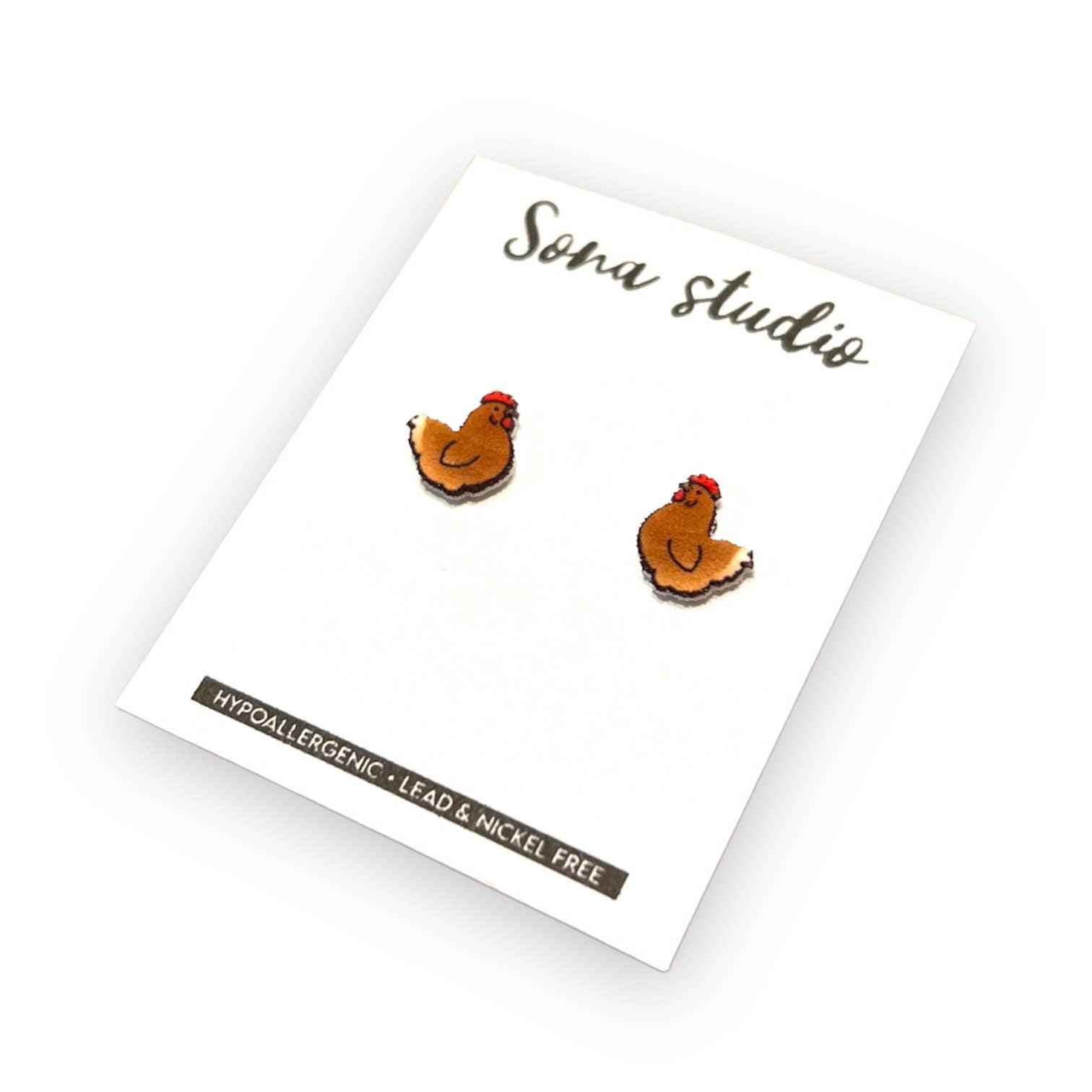 Handmade with love. Featuring lightweight plastic and stainless steel posts, with stainless steel and plastic backs. Earrings are hypoallergenic, and nickel free, making them safe for those with sensitive skin. These earrings are sealed with a clear matte finish, however they are not waterproof. Remove prior to showering, swimming, etc. To clean, wipe gently with a dry cloth.