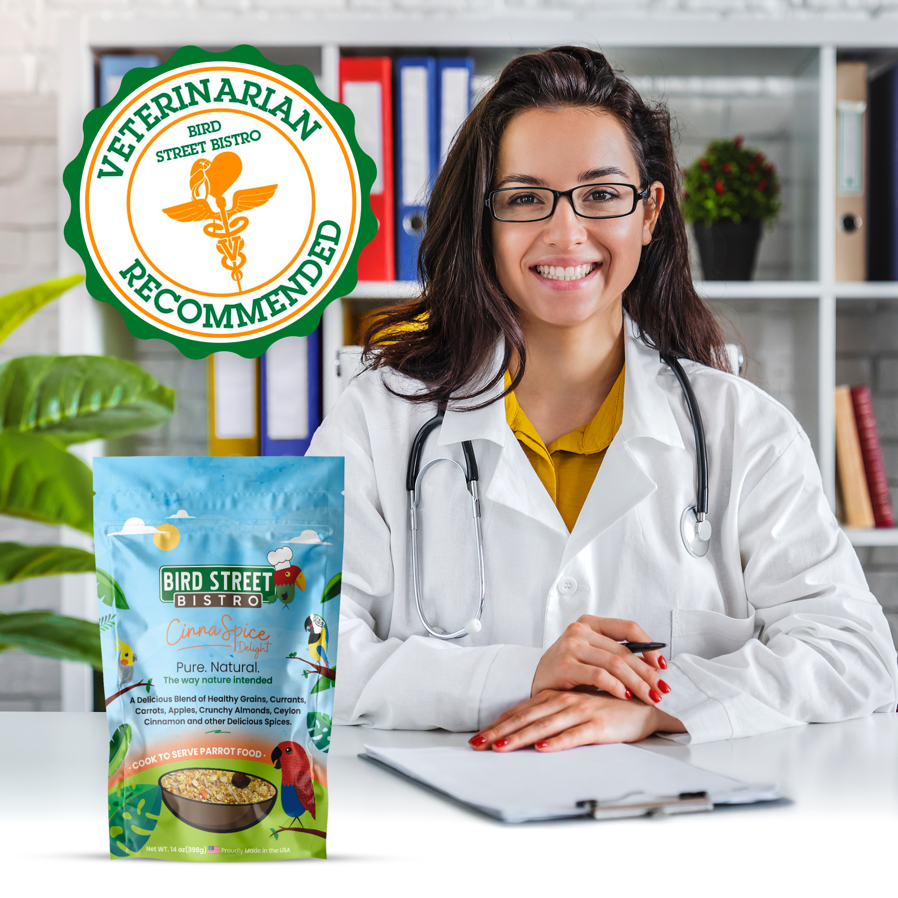 Product Features: CinnaSpice Parrot Food Wondering what to feed your parrot? Start with organic, all-natural ingredients and flavors that they love! The CinnaSpice parrot food blend is thoughtfully crafted with nutrition in mind. Like all Bird Street Bistro products, it’s made without any fillers, additives, sugar, salt, or artificial ingredients. Every bite is packed with healthy organic grains, fruits, and vegetables that are packed with protein, fiber, and vitamins. The dried blend boils and simmers in just 15 minutes. As it cooks, enjoy the vibrant scent of organic coconut, cinnamon, apple, and sweet-spicy anise seed! It’s ready to serve after five minutes of cooling and can be frozen for a week of convenient meals. Encourage your bird’s wild foraging instincts with flavorful, bite-sized ingredients and crunchy almonds that add a textural surprise. * 100% All natural & organic with no preservatives * Rich in fiber for digestive health * Freezes for up to a week.