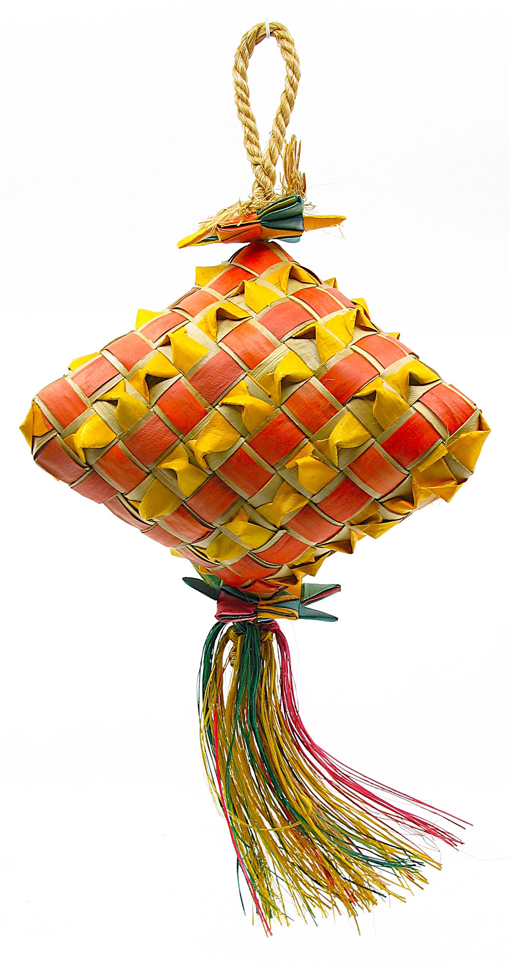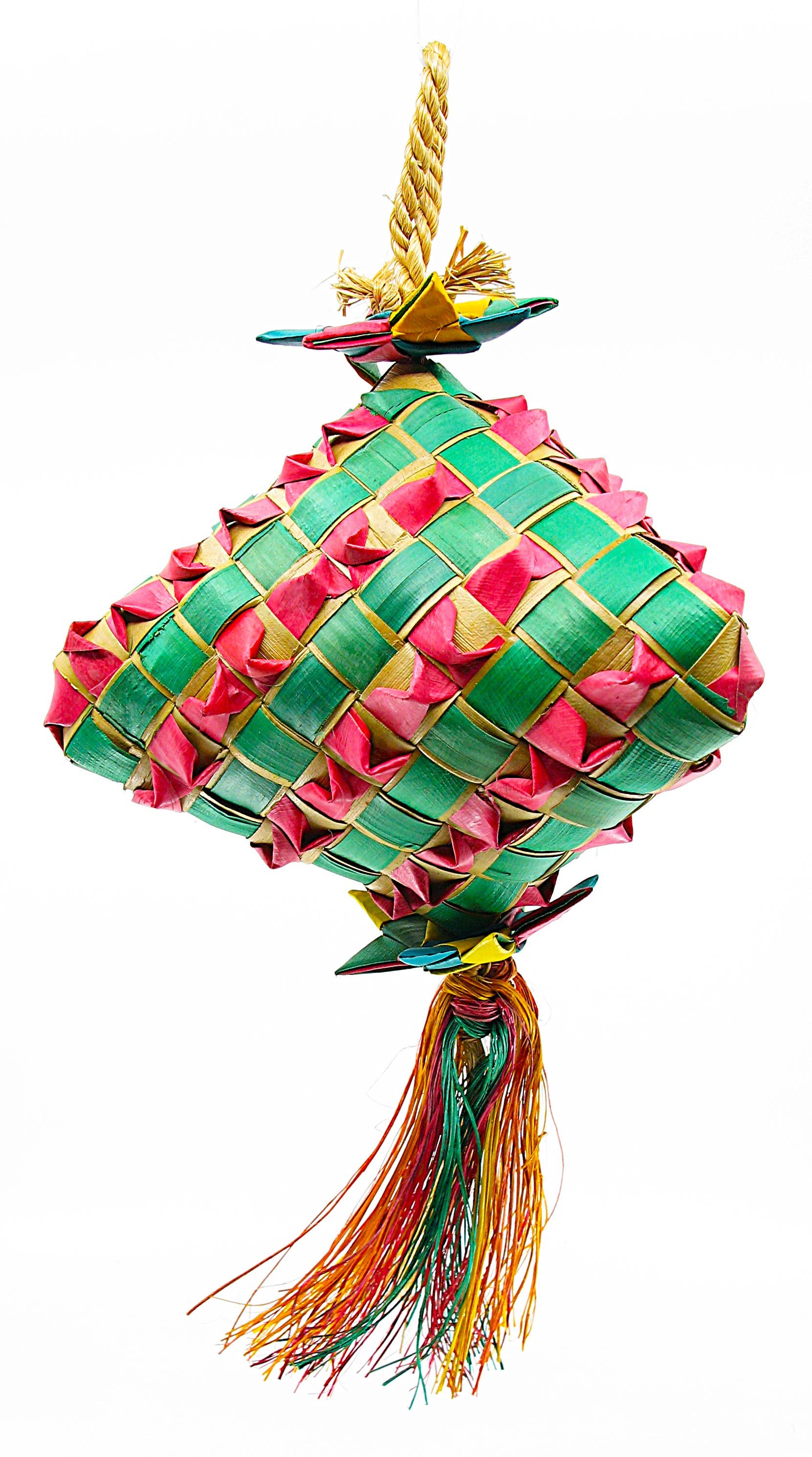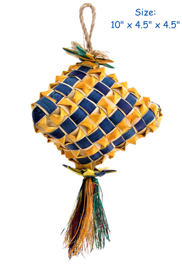 The Diamond pinata is an all natural shredding toy. It's colorful design and intriguing texture are delightful inviting to be beaked, tongued and shredded.