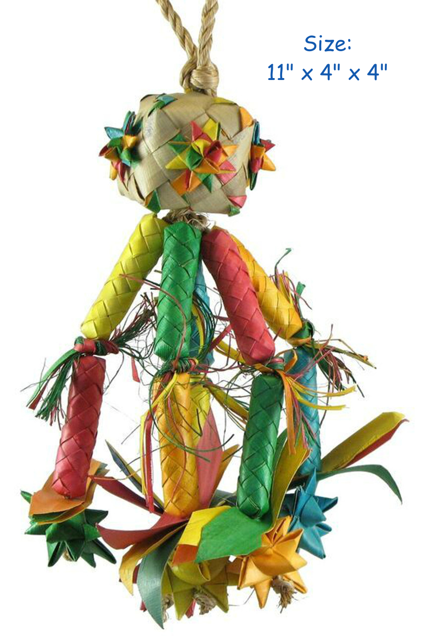 Firecracker, a Bird Swing/Toy from Planet Pleasures, is crafted with creative, engaging parrot toys using sustainable, non-toxic, and natural materials. It mirrors materials birds encounter in the wild, like palm leaves, coconut, and bamboo.